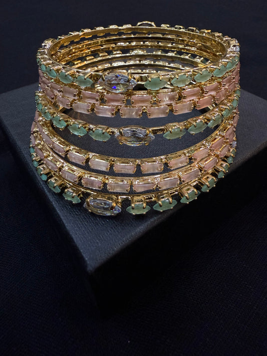 Pink Green Sparkle Luxe Bangles (Set of 7)