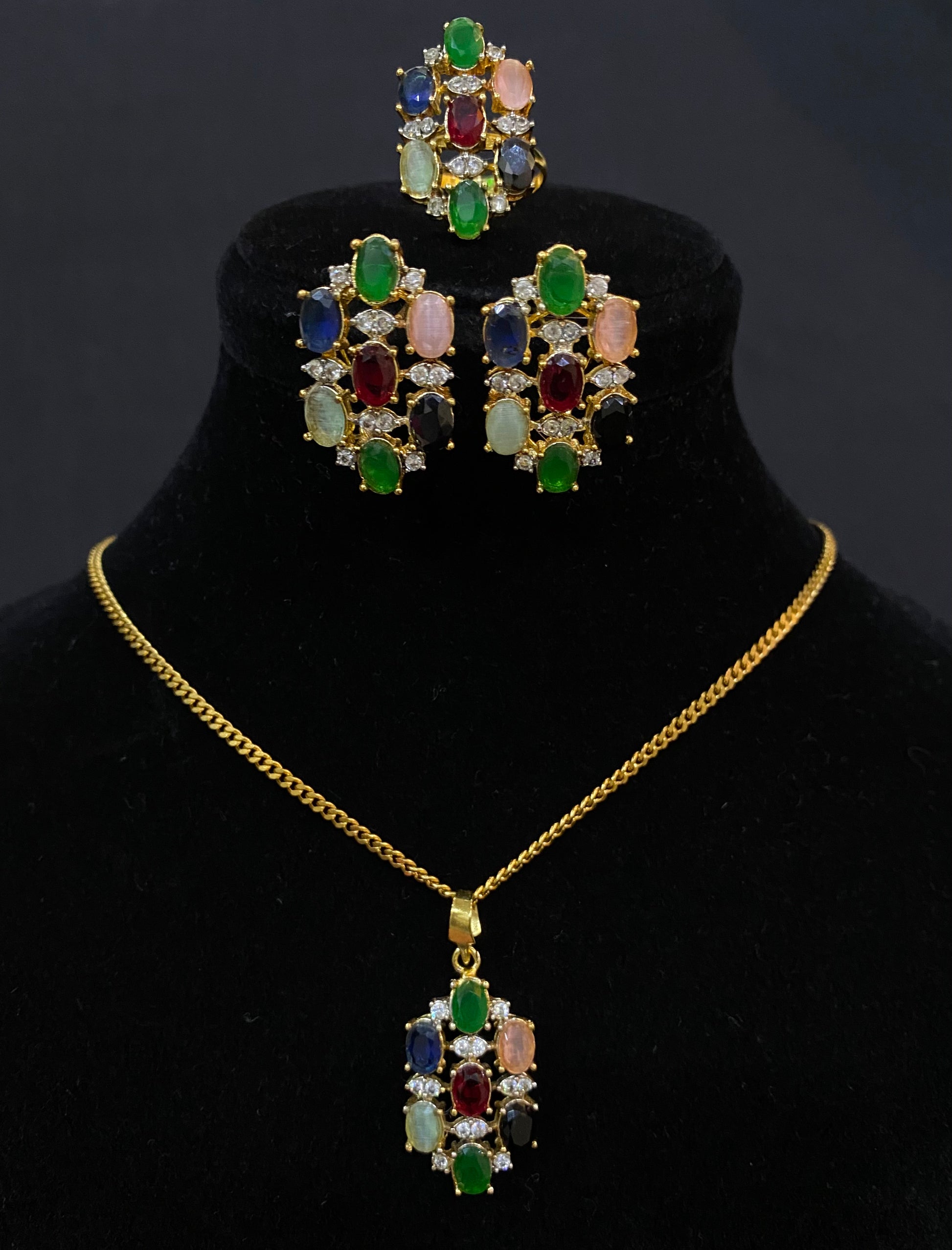 - Adjustable Ring: The set is complete with an adjustable ring, allowing you to wear it comfortably and flaunt its vibrant stone-studded design.