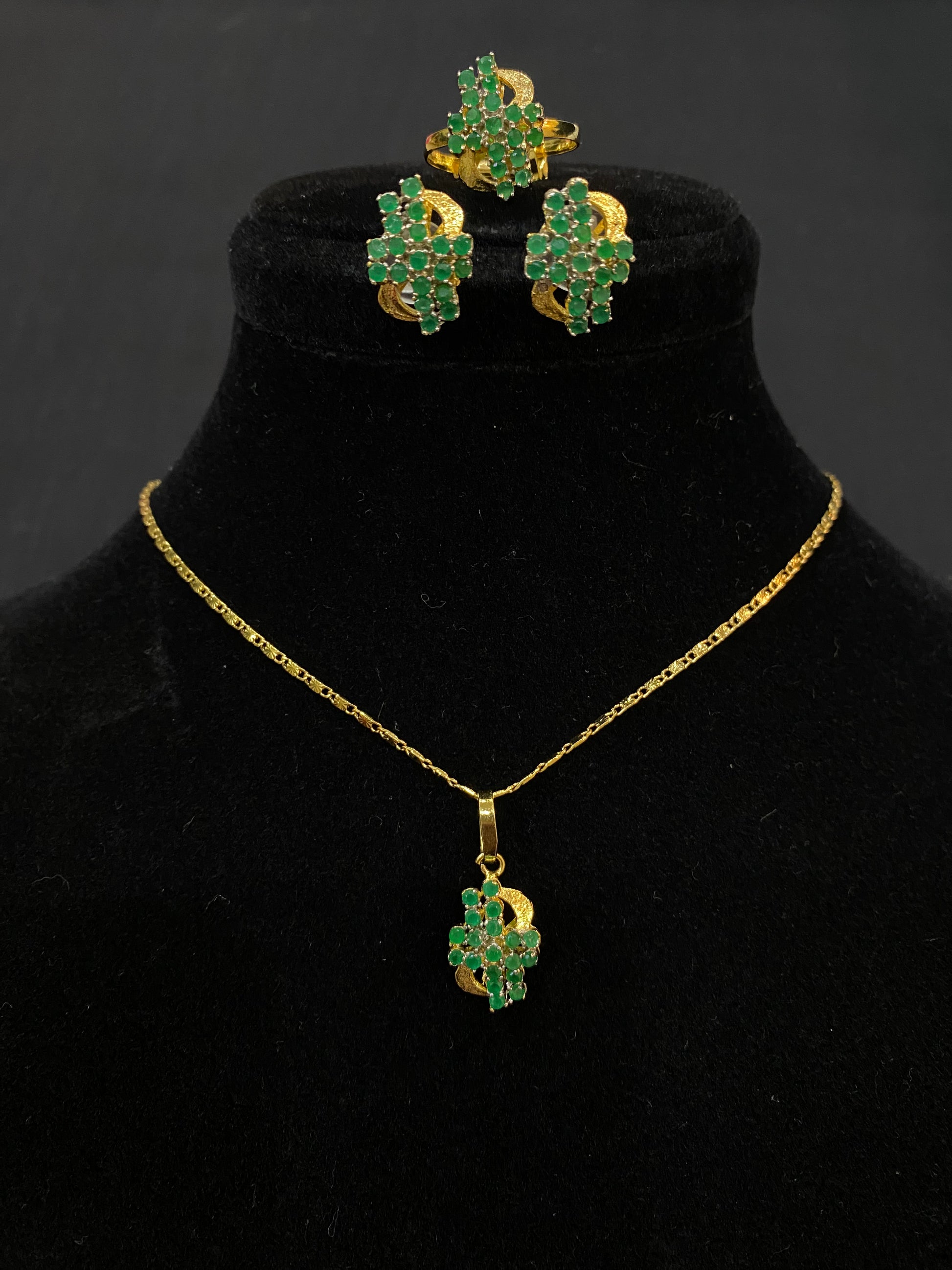 - Pendant Design: Features a striking cluster of emerald-inspired stones, beautifully arranged to create an elegant and timeless look.