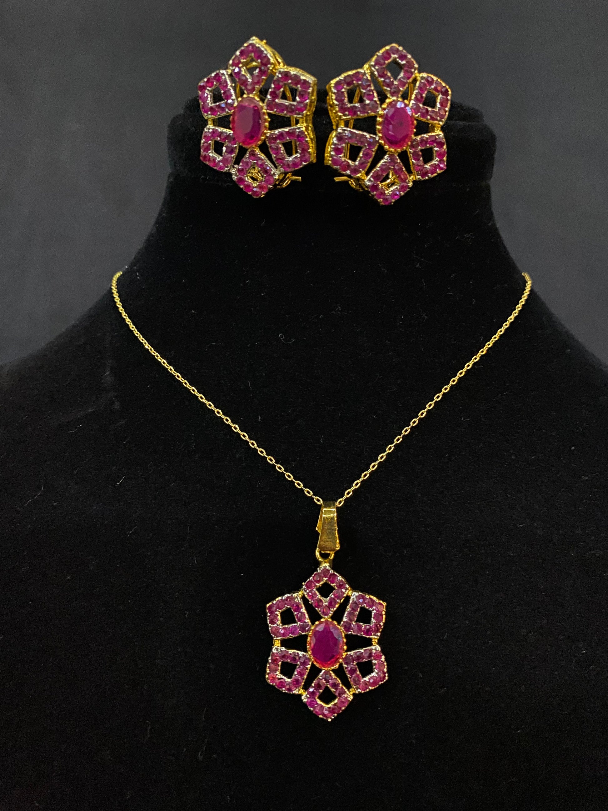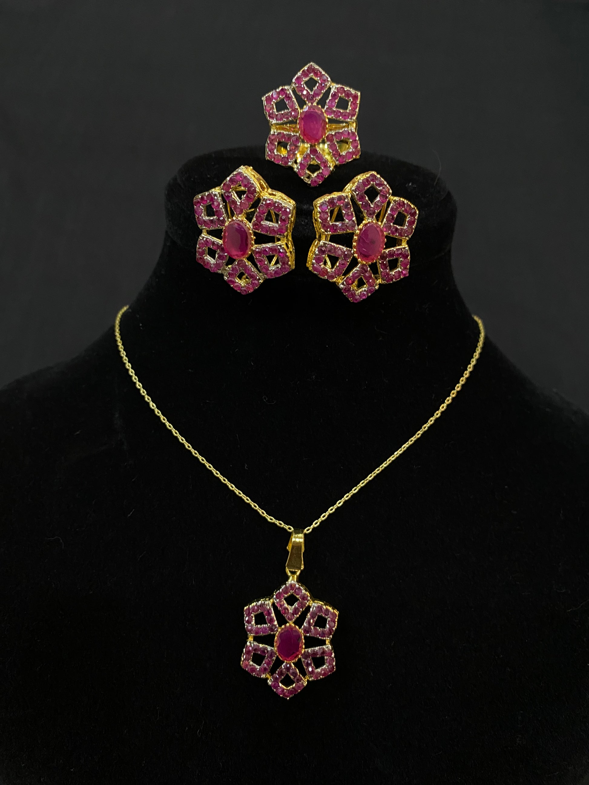- Pendant Design: Features a charming floral pendant with ruby-inspired stones.