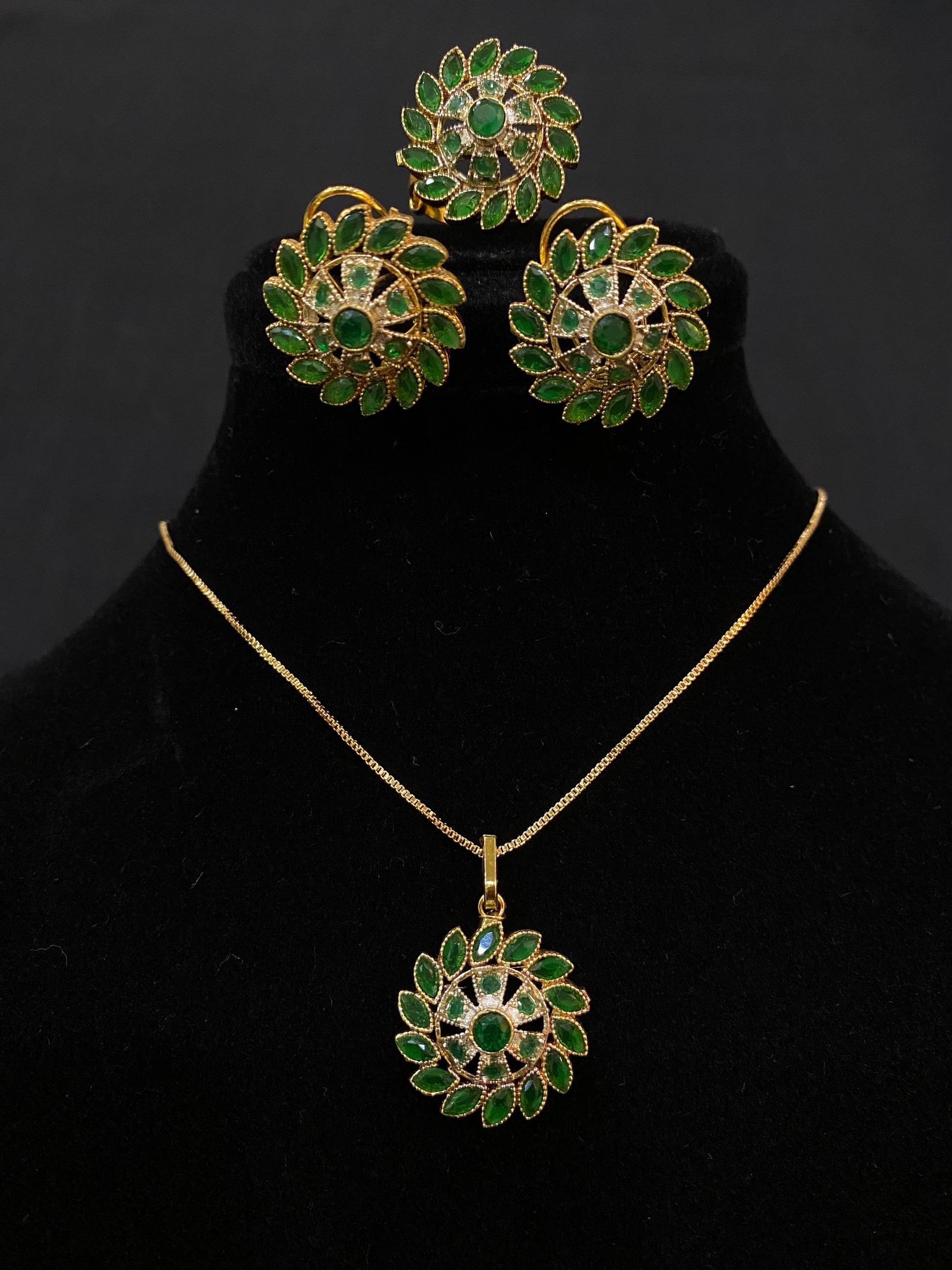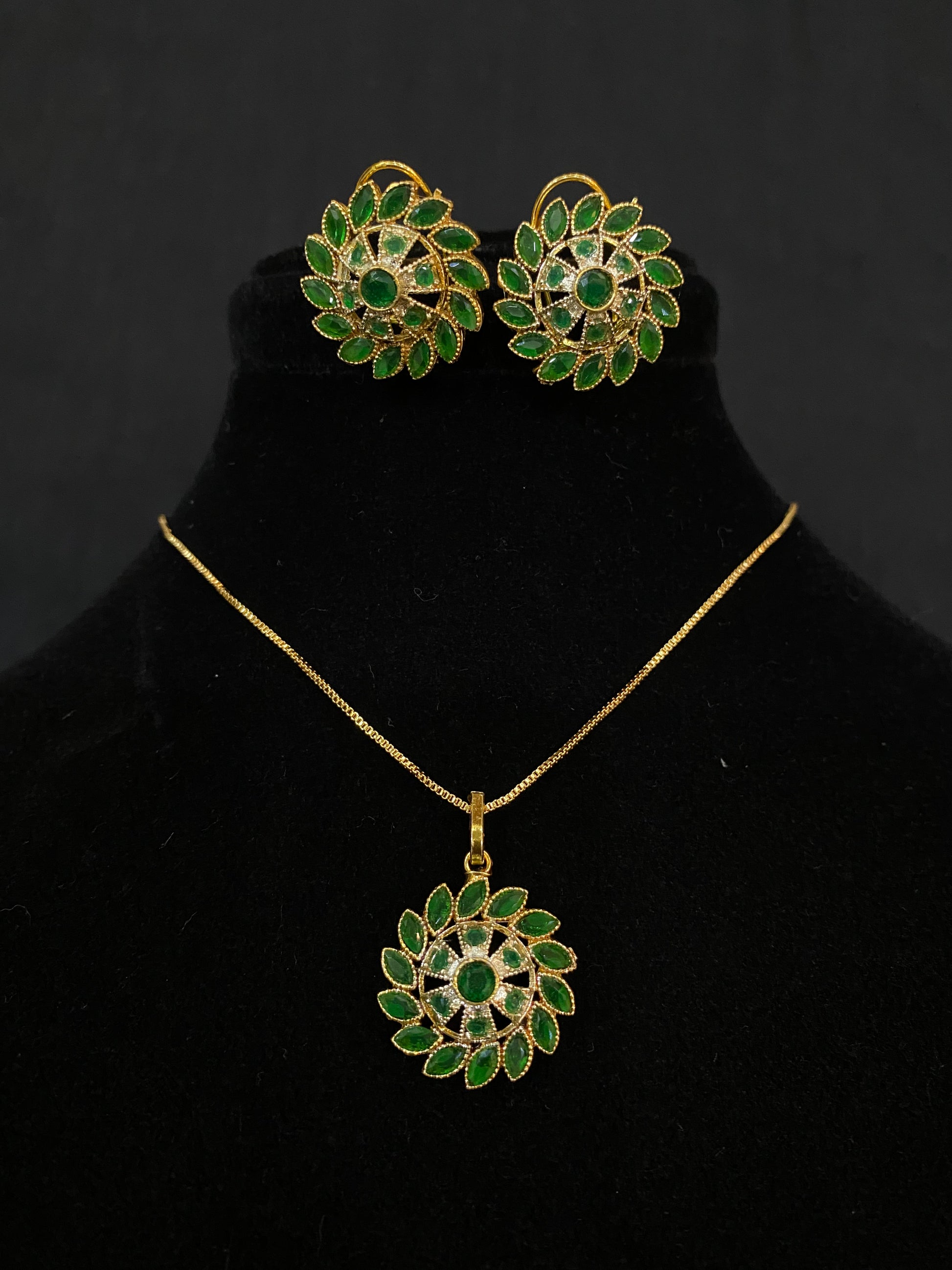 - Pendant Design: A stunning circular design adorned with green stones and intricate detailing, radiating timeless beauty.