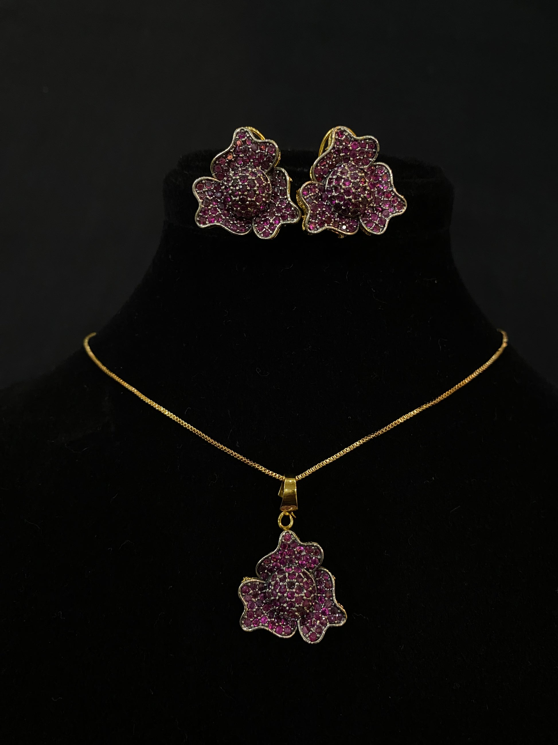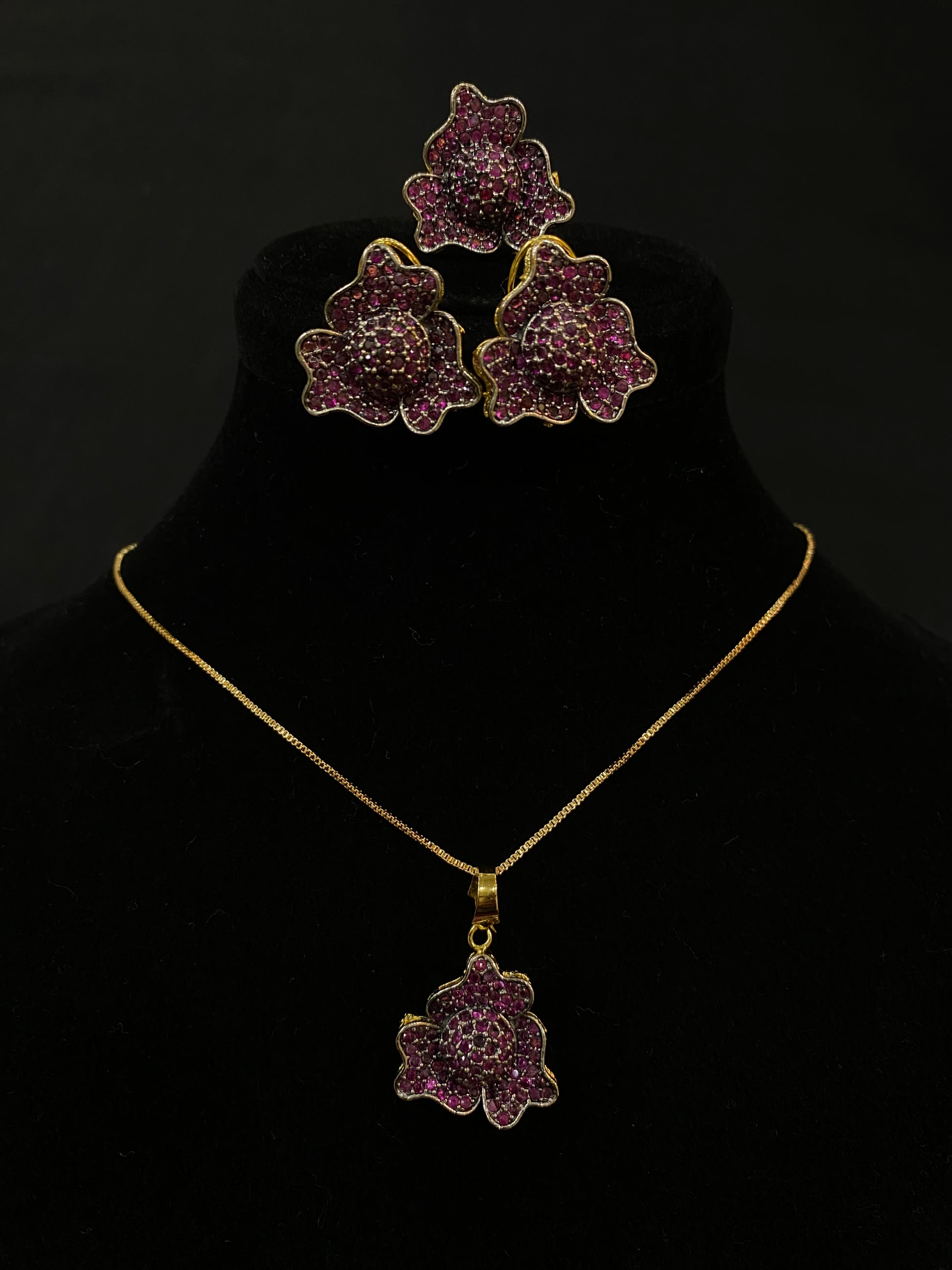 - Pendant Design: A striking flower-shaped pendant encrusted with ruby-inspired stones for a timeless look.